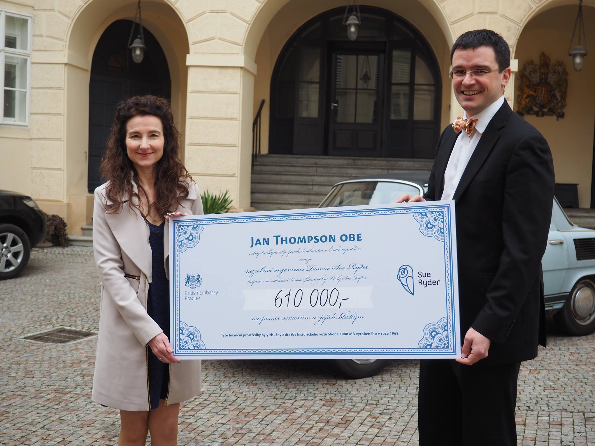 Britská velvyslankyně Jan Thompsonová, která nyní končí svou diplomatickou misi v Praze, vyzvala českou veřejnost, aby podpořila práci Sue Ryder. Své oblíbené embéčko - veterán Škoda 1000 MB nabídla do dražby. Škodovka z roku 1968 byla nakonec prodána za 610 000 Kč kupci, který si přál zůstat v anonymitě. Celý výtěžek věnovala paní velvyslankyně naší organizaci.