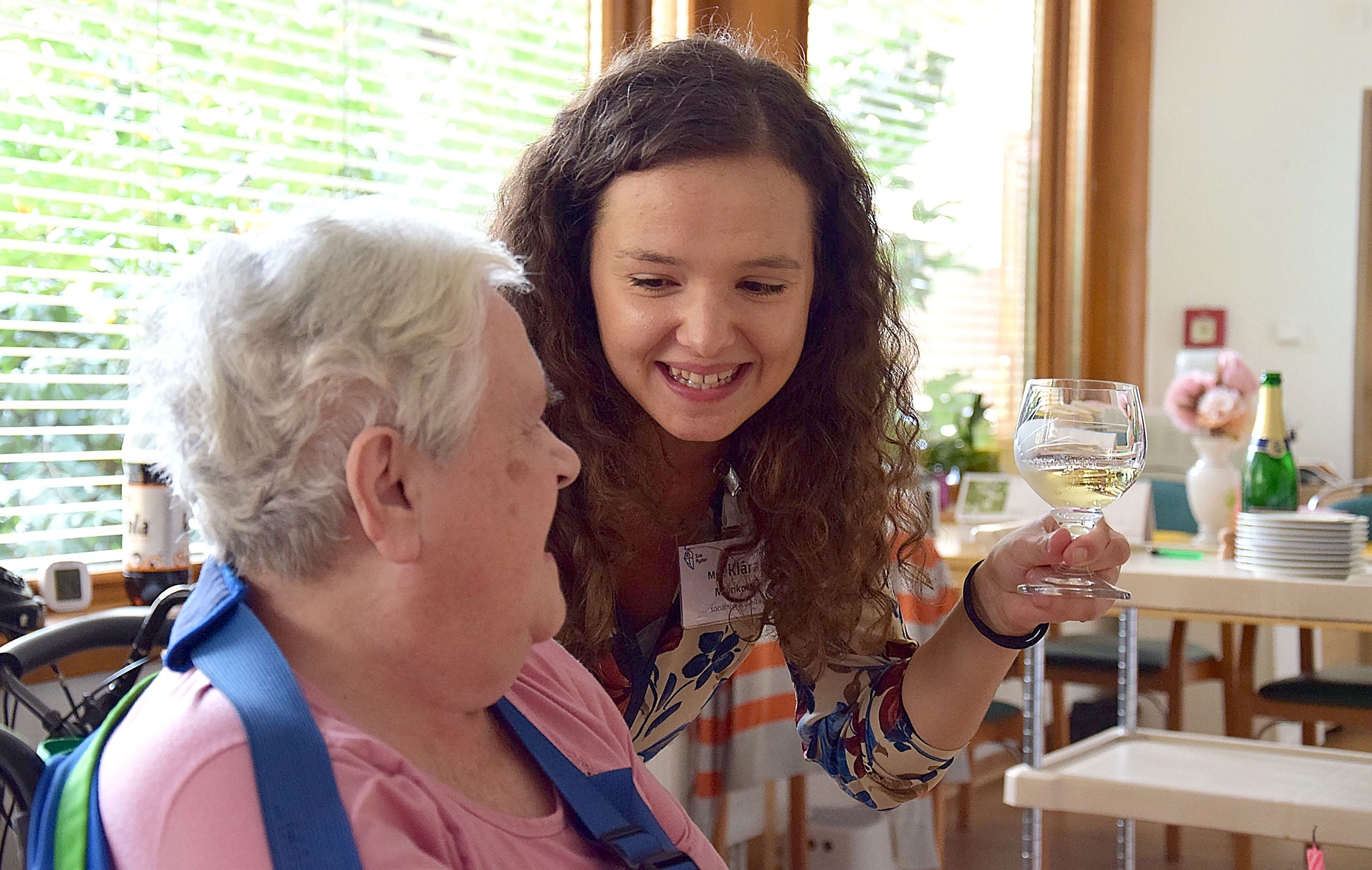 „Naše role v pečujícím týmu je být oporou klientovi, hájit jeho zájem a vůli. Jsme hlavní kontakt i pro rodinné příslušníky. Zvlášť v současné situaci je informujeme o dění v domově, když teď nesmí za svými blízkými. Hledáme nové možnosti, jak může klient a rodina zůstat ve spojení. Natáčíme videa, zkoušíme Skype hovory, telefonujeme. Když přijde pošta, předáváme klientům dopisy a pohledy a někdy spolu i odpovídáme. Je to každý den velmi intenzivní komunikace na všechny strany. Nejsem na to ale sama. Mám velkou oporu u svých kolegů!